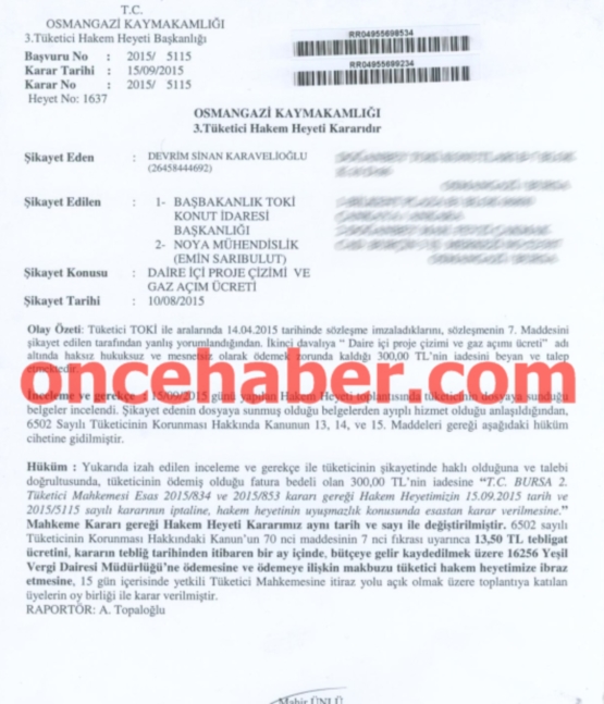 TOK� evlerinde taahh�t edildi�i halde do�algaz ba�lanmas� i�in ayr�ca tesisat projelendirme �creti istenmesine T�ketici Hakem Heyeti 'Dur' dedi... TOK� Evleri "do�algazl�" olarak sat��a sunuluyor olsa dahi, evinize do�algaz ba�latmak i�in da��t�m �irketine abonelik a�t�rmaya gitti�inizde, sizden "proje" isteniyor. Projeyi ise, tesisat� projelendirne firmadan ancak "proje paras�" �deyerek alabiliyorsunuz. ��te bu durumdan rahats�z olan Devrim Sinan KARAVEL�O�LU, konuyu T�ketici Hakem Heyetine G�t�rd� ve hakl�l���n� tescil ettirdi. ![]() Karar Sonras� bas�n a��klamas� yay�nlayan KARAVEL�O�LU, karar�n TOK� ve y�klenici m�hendislik firmalar�na kar�� bir zafer oldu�unu belirtti. BASIN A�IKLAMASI Bilindi�i �zere Ba�bakanl�k Toplu Konut �daresi Ba�kanl��� (TOK�) taraf�ndan yapt�r�lan merkezi sistem �s�tma dairelerde yaln�zca �ofben ve ocak kullan�m� i�in gerekli olan bireysel do�algaz aboneli�i ba�vurusu esnas�nda TOKݒnin y�klenici firmas� durumunda olan m�hendislik firmalar� taraf�ndan �Daire i�i proje �izimi ve gaz a��m� �creti� ad� alt�nda haks�z, hukuksuz ve yasal dayana�� olmadan 300 TL. �cret al�nmaktad�r. TOK� bu binalar� anahtar teslim yapmay� taahh�t etmi� olup daireler projelerinde �do�algazl�� olarak g�r�nmektedirler. Hi� kimsenin sonradan do�algaz tesisat� yapt�rmas� s�z konusu de�ildir. Daire i�i proje �iziminin TOK� ile y�klenici m�hendislik firmalar� aras�nda halledilmesi gereken bir konu oldu�u, t�ketici konumundaki daire sahiplerini ilgilendirmedi�ine ku�ku yoktur. Durum buyken TOK� S�zle�mesi�nin �Gayrimenkule su, elektrik, do�algaz vb ba�lanmas�na ili�kin tesis, abonman ve di�er ba�lama giderleri al�c� taraf�ndan �denecektir.� h�km�n� i�eren 7. maddesi TOK� ve y�klenici m�hendislik firmalar� taraf�ndan kas�tl� olarak yanl�� yorumlanarak bu �cretler al�nmaktad�r. Bu maddede bahsedilen �cretler daire sahibinin Bursagaz, Teda�, Buski gibi kurumlara �deyece�i abonelik �creti, g�vence bedeli gibi �cretler olup hi�bir �ekilde daire i�i proje �izimi ve gaz a��m� �cretini kapsamamaktad�r. �ok say�da daire sahibinin �ikayetine sebep olan bu �Deli Dumrul �creti� ni dairemin do�algaz aboneli�ini yapt�rabilmek i�in ben de TOKݒnin y�klenicisi konumunda olan Noya M�hendislik adl� m�hendislik firmas�na �demek zorunda kald�m. Ard�ndan hem TOK� hem de Noya M�hendislik (Emin SARIBULUT) hakk�nda Bursa, Osmangazi 3. T�ketici Sorunlar� Hakem Heyeti Ba�kanl����na �ikayette bulundum. Ad� ge�en T�ketici Sorunlar� Hakem Heyeti �yeleri sahs�ma kar�� duyduklar� �zel husumet nedeni ile ve �ikayetimin yarg�lama yapmay� gerektirir nitelikte olmas� gibi as�ls�z bir gerek�e ile �ikayetimi reddetmi�tir. Bu konudaki ayr�nt� gerekirse taraf�mdan a��klanacakt�r. Y�lmad�m, karara Bursa 2. T�ketici Mahkemesi�nde itiraz ettim. Bursa 2. T�ketici Mahkemesi, Osmangazi T�ketici Sorunlar� Hakem Heyeti�nin bu karar�n� iptal etmi� ve kendilerine geri g�ndermi�tir. Bunun �zerine Bursa 3. T�ketici Sorunlar� Hakem Heyeti istemeyerek de olsa haks�z, hukuksuz, mesnetsiz olarak al�nan bu �cretin taraf�ma iadesine karar vermek zorunda kalm��t�r. Bu karar TOKݒye ve onun y�klenicisi konumunda olan m�hendislik firmalar�na kar�� t�keticinin bir zaferidir. Kamuoyuna sayg� ile duyurulur.10.03.2016 Devrim Sinan KARAVEL�O�LU �nce Haber Ajans� (OHA) Bu haber 20204 defa okunmu�tur.