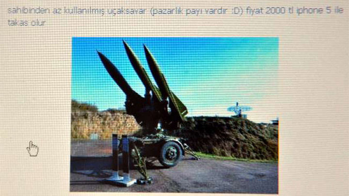 Bal�kesirli bir kullan�c� taraf�ndan u�aksavar foto�raf� ile birlikte sosyal medyaya y�klendi�i anla��lan ilanda, "Sat�l�k u�aksavar, 2000 TL, iPhone 5 takas olur' ilan� yer ald�. Okuyan vatanda�lar� g�l�mseten ilan�n ikinci el e�yalar�n al�n�p sat�ld��� bir gruba y�klenmesi ise durumu ilgin� bir hale getirdi. �zer Akg�n taraf�ndan okunan sat�l�k u�aksavar ilan�na �ok say�da yorum geldi.